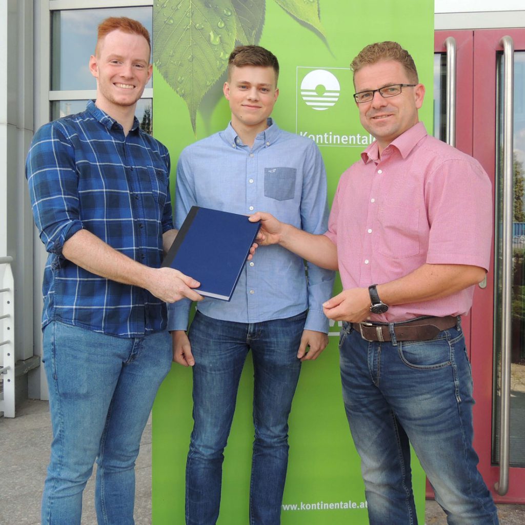 Ende Juni übergaben die beiden zwei Exemplare ihrer Arbeit an Markus Stoffel, Verkaufsleiter für Österreich bei der Kontinentale. Wir gratulieren nochmals herzlich und wünschen den beiden viel Erfolg.
